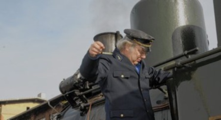 Lokführer Gernot Gattermann überprüft den Wasserstand bei der Lok Emma. Regelmäßig musste nachgefüllt werden. |